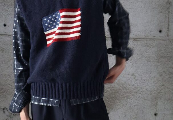 POLO Ralph Lauren 星条旗柄 コットンニットベスト NAVY XL