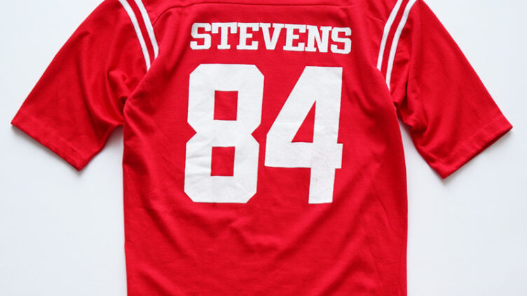 80’s ARTEX COTTON W-PRINT HALF SLEEVE FOOTBALL TEE “STEVENS 84” “MADE IN USA”