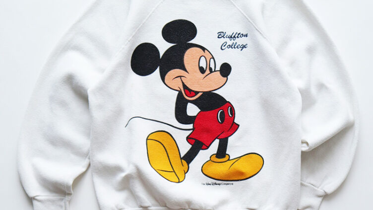 〜90’s UNKNOWN BRAND “MICKEY” PRINT CREW NECK SWEAT “Bluffton College”