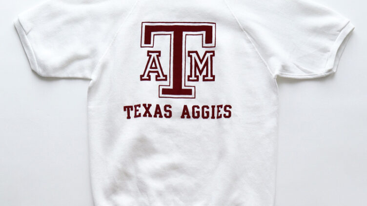 70’s Collegiate Pacific FLOCK PRINT S/S CREW NECK SWEAT “TEXAS AGGIES” “MADE IN USA”