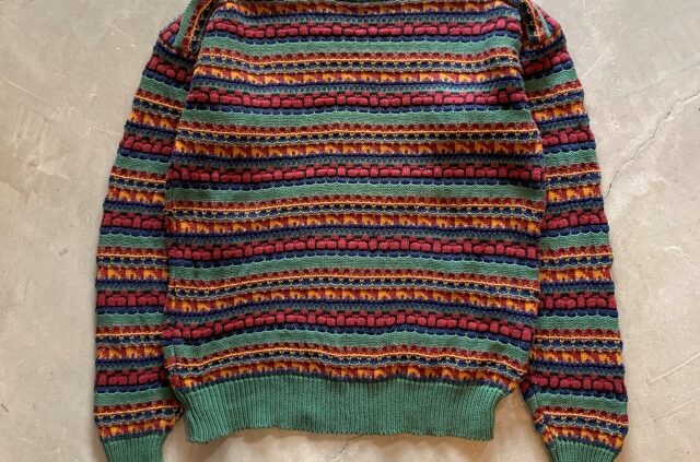 JACK CLOTHING SUPPLY【M/L】80s-90s IZOD LACOSTE コットンニット セーター 緑ボーダー 総柄■ビンテージ オールド レトロ アメリカ古着 ラコステ