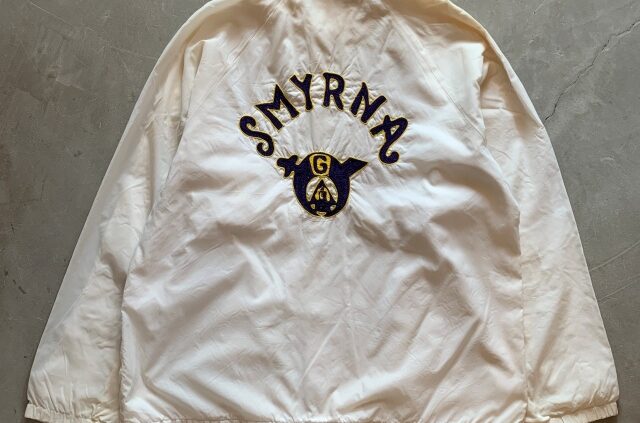 JACK CLOTHING SUPPLY【M/L】難有り 80s USA製 フリーメイソン チェーン刺繍 ナイロン コーチジャケット 白■ビンテージ アメリカ古着 シュライン 秘密結社