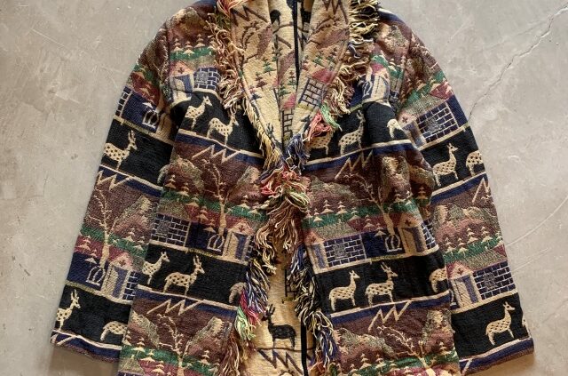 JACK CLOTHING SUPPLY【M/L】PASSPORTS ブランケット地 ラグ ショールカラージャケット 総柄■ビンテージ オールド レトロ アメリカ古着 インド製 カーディガン