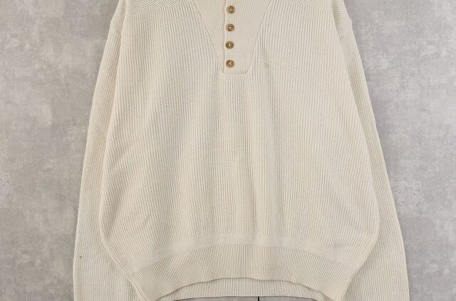 Feeet80’s L.L.Bean USA製 ヘンリーネック コットンニットセーター L