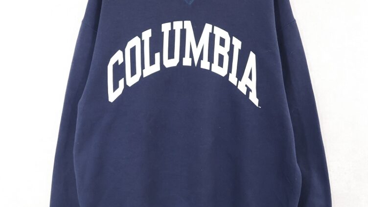 Feeet90’s RUSSELL ATHLETIC USA製 “COLUMBIA” 前V プリントスウェット NAVY L