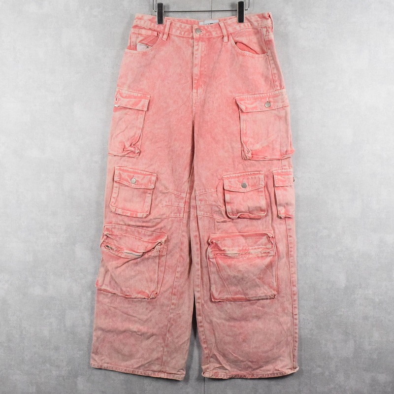 FASHION NOVA ケミカルウォッシュ ワイドカーゴパンツ PINK W34