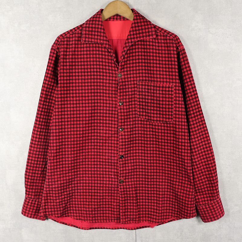 50’s〜 チェック柄 イタリアンカラー プリントコーデュロイシャツ