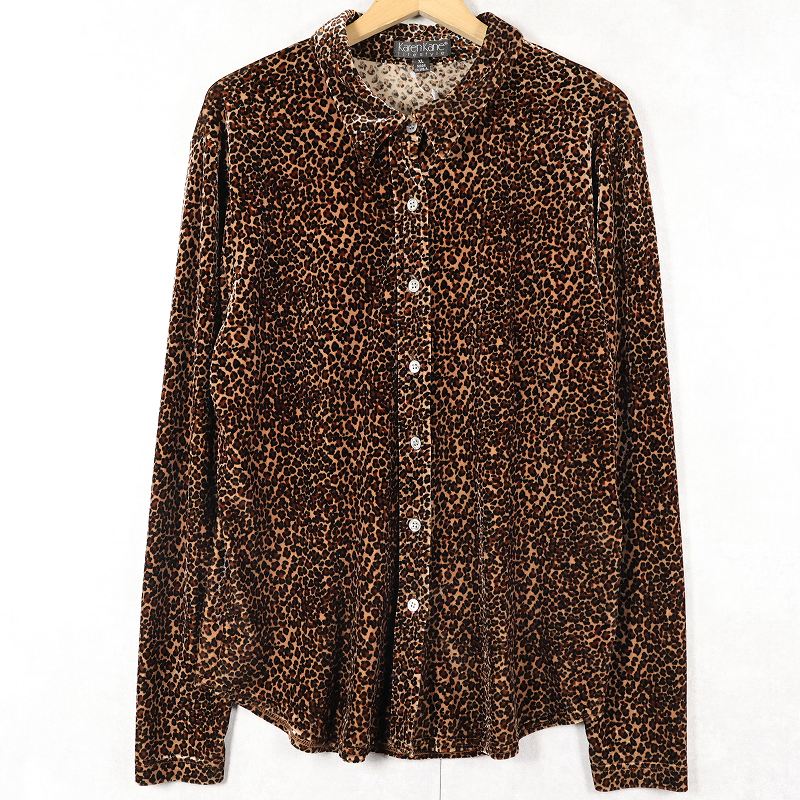 GANTOS 総柄 レーヨン×シルク シースルー オープンカラーシャツ XL
