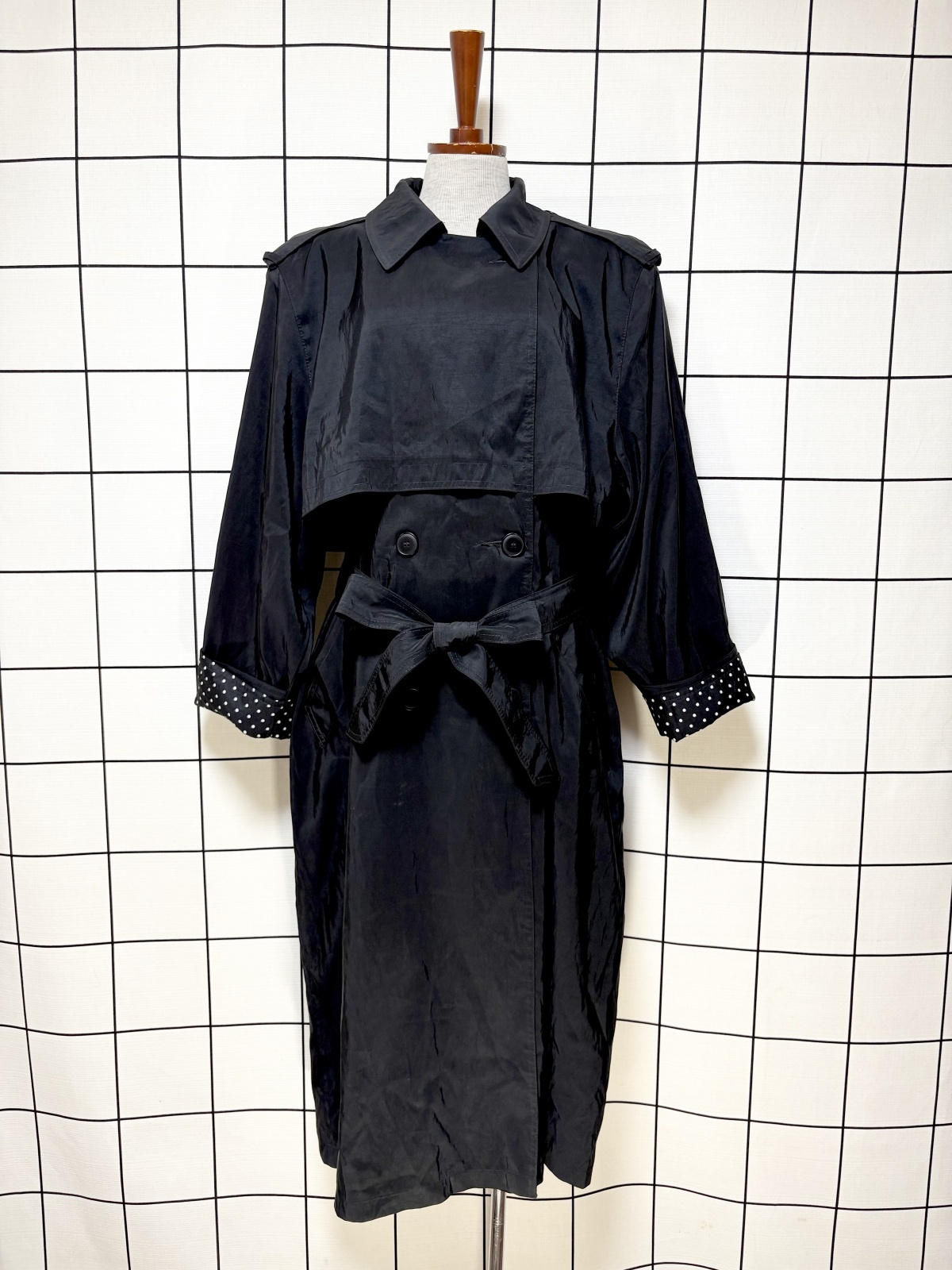 ブラック リボンベルト付 レトロ USA古着 ヴィンテージトレンチコート