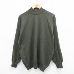 L★古着 長袖 セーター メンズ 90年代 90s モックネック ハイネック イタリア製 濃緑 グリーン 25oct10 中古 ニット トップス