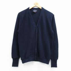 M★古着 ジャンセン 長袖 ニット カーディガン メンズ 80年代 80s 無地 アクリル USA製 紺 ネイビー 【spe】 25oct22 中古 トップス