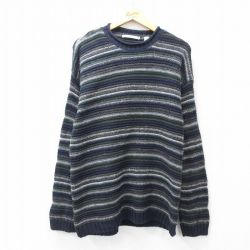 M★古着 ペリーエリス 長袖 セーター メンズ 90年代 90s クルーネック 紺他 ネイビー ボーダー 【spe】 25oct11 中古 ニット トップス