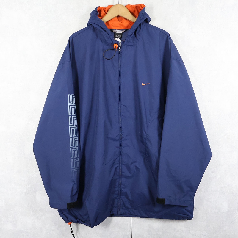 NIKE 袖プリント ナイロンジップパーカー NAVY XXL