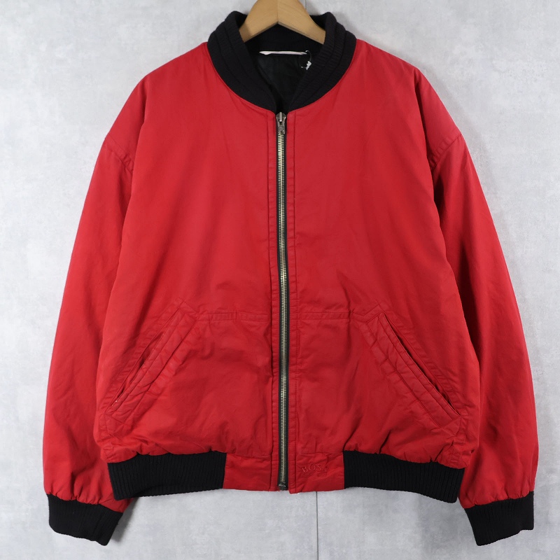 80’s HUGO BOSS ITALY製 ロゴ刺繍 キルティングライナー コットンジップジャケット