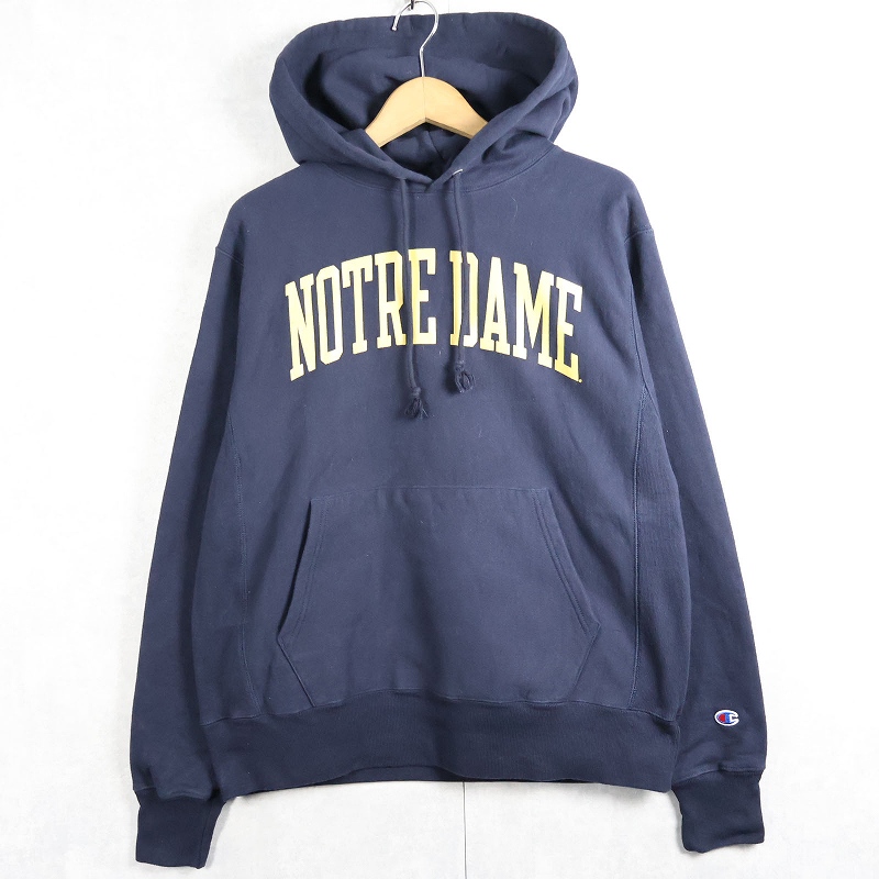 Champion REVERSE WEAVE “NOTRE DAME” プリントスウェットフーディー NAVY M
