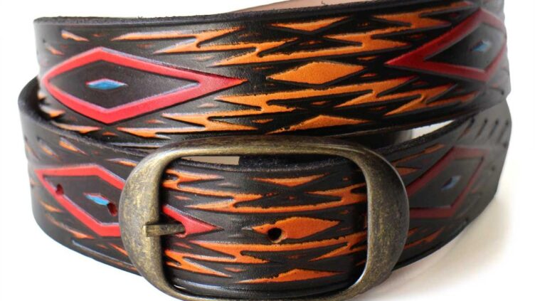Sixpacjoe新品★USA製 BRACKNEY LEATHER WORKS ネイティブ柄 型押し ペイント レザーベルト ブラック 34