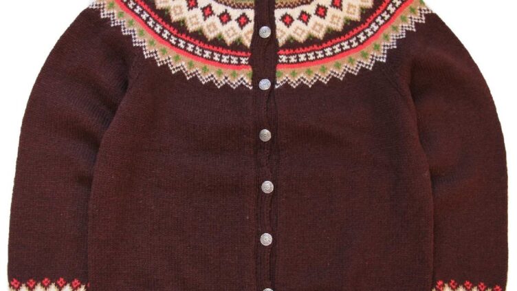 Sixpacjoe60s ノルウェー製 HUSFLIDEN 丸ヨーク ノルディック柄 ノルウェージャン ウール ハンドニット カーディガン