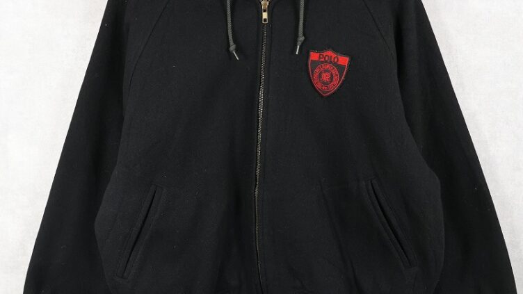 FeeetPOLO Ralph Lauren エンブレムパッチ付き ラビットフード メルトンウールジャケット BLACK S