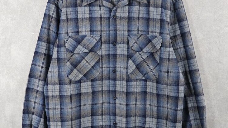 Feeet90’s PENDLETON USA製 オンブレーチェック柄 オープンカラーウールシャツ L
