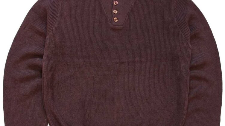 Sixpacjoe80s USA製 LANDS’ENDランズエンド 5ボタン ヘンリーネック コットンニット セーター 焦げ茶 L-T
