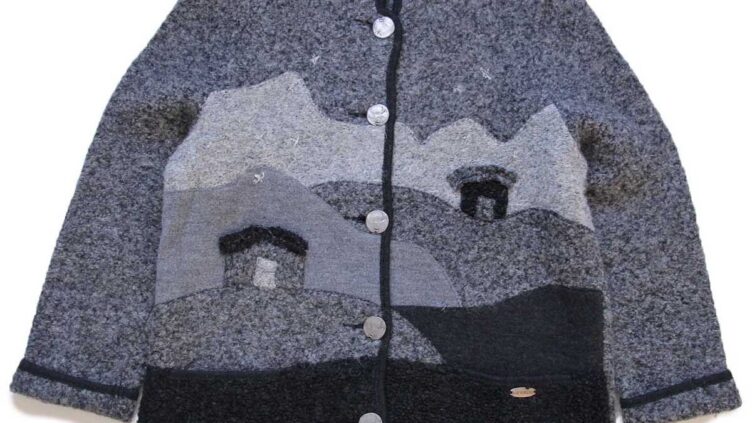 Sixpacjoeオーストリア製 GIESSWEIN 風景柄 アップリケ アート スタンドカラー チロリアン ボイルドウール ジャケット 38