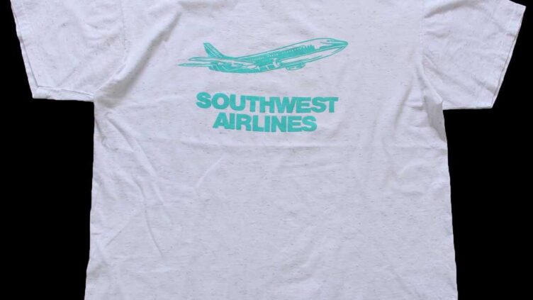 Sixpacjoe90s USA製 SOUTHWEST AIRLINES 飛行機 コットンTシャツ 杢ホワイト XL