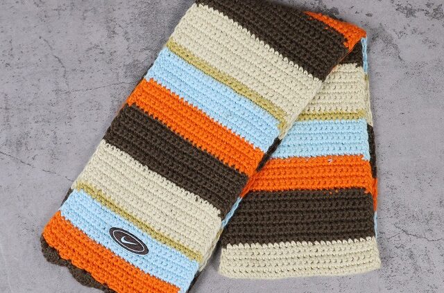Feeet90〜2000’s NIKE ボーダー柄 ロゴ刺繡 アクリル×ウールニットマフラー