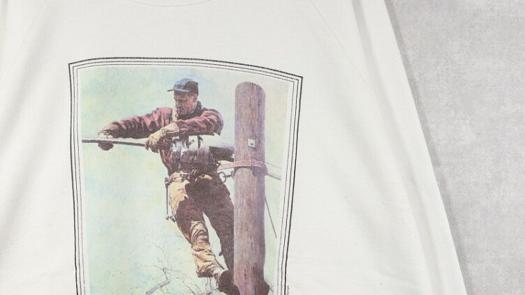 Feeet80’s Norman Rockwell USA製 “The Lineman” アートプリントラグランスウェット XXL