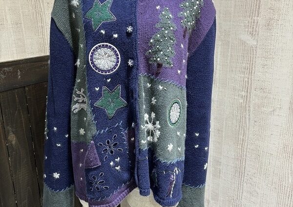 Chago Chago BOUTIQUE90s North Crest 総柄模様 景色柄 もみの木 くるみボタン ニット セーター カーディガン