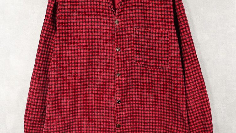 Feeet50’s〜 チェック柄 イタリアンカラー プリントコーデュロイシャツ