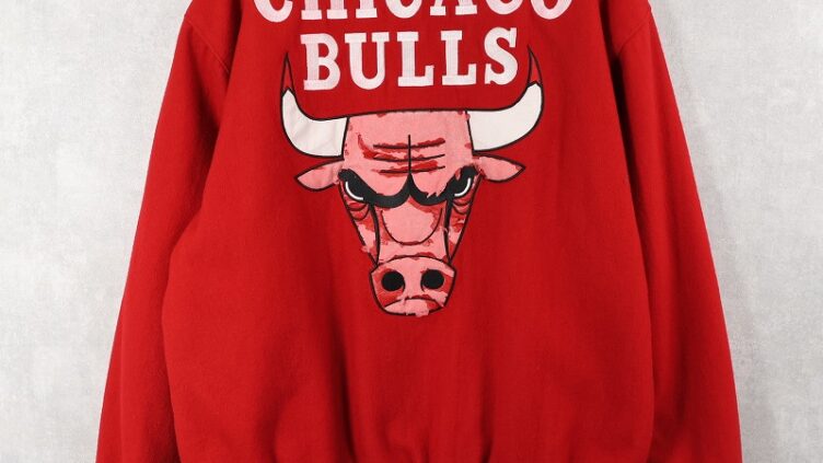 FeeetCHICAGO BULLS NBAチーム ロゴ刺繍 リバーシブルスタジャン L