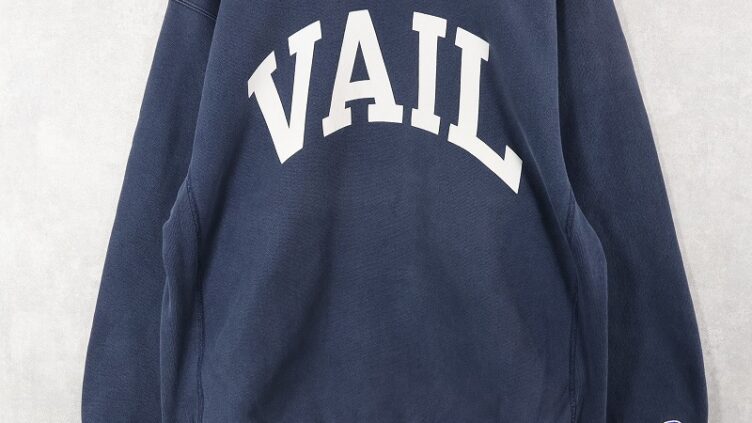 Feeet90’s Champion REVERSE WEAVE “VAIL” プリントスウェット NAVY L