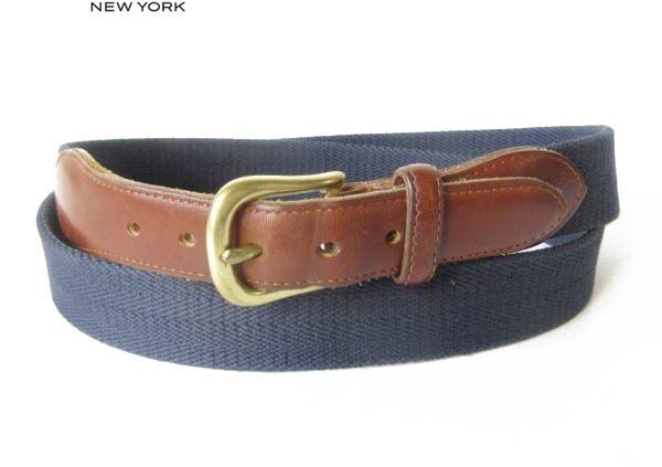 BRIDGE90s COACH オールド コーチ キャンバス×レザー リボンベルト 紺系 表記36/90cm 実寸34インチ〜37インチ ビンテージ D95
