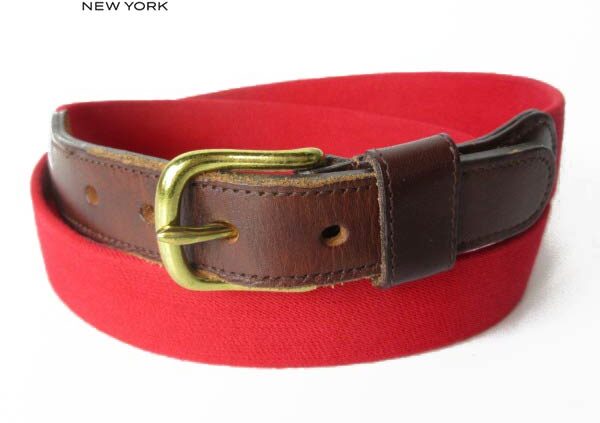 BRIDGE90s COACH オールド コーチ 伸縮素材×レザー リボンベルト 34インチ〜36インチ 赤系 ビンテージ D62