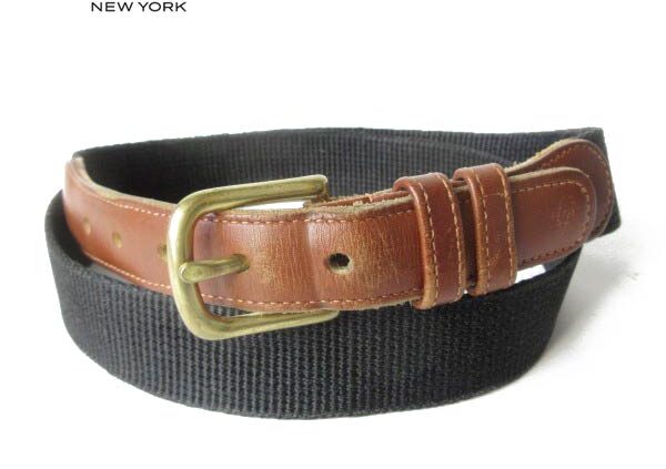 BRIDGE90s COACH オールド コーチ リネン×レザー リボンベルト 黒 表記34/85cm 実寸W32インチ〜35インチ ビンテージ D94