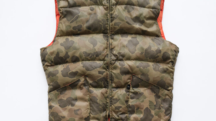 Grandberry Jam〜80’s 10X RIP-STOP NYLON PRINT DUCK HUNTER CAMOUFLAGE ZIP DOWN VEST “MADE IN USA”