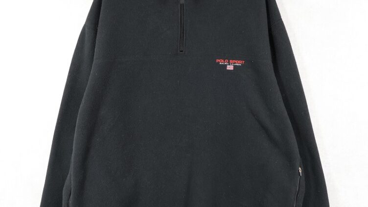 Feeet90’s POLO SPORT Ralph Lauren ロゴ刺繍 ハーフジップ フリースジャケット BLACK XXL
