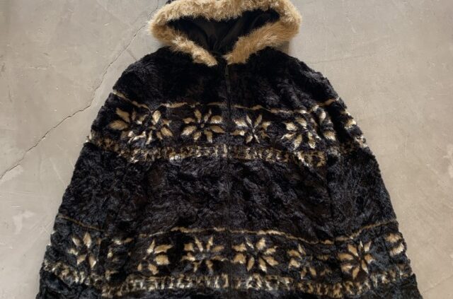 JACK CLOTHING SUPPLY【M】Anthony Richards アクリルボア エスキモージャケット パーカー 黒 総柄■ビンテージ オールド レトロ アメリカ古着 リバーシブル