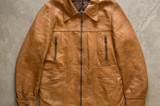 JACK CLOTHING SUPPLY【M】70s-80s UNKNOWN ジップアップ レザージャケット ブラウン 茶系■ビンテージ オールド レトロ アメリカ古着 革ジャン ハーフ丈