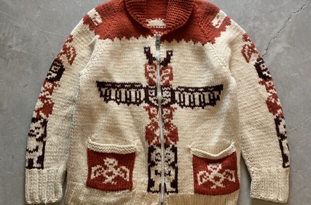 JACK CLOTHING SUPPLY【S/M】60s-70s カナダ トーテムポール ショールカラー カウチンニット 茶系■ビンテージ アメリカ古着 ジップ ウールセーター ジャケット