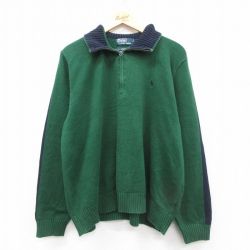 RUSHOUTXL★古着 ラルフローレン Ralph Lauren 長袖 ブランド ハーフジップ セーター メンズ 90年代 90s ワンポイントロゴ 大きいサイズ コットン 緑他 グリーン 【spe】 25nov05 中古 ニット トップス