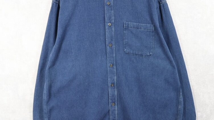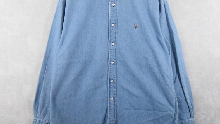 FeeetPOLO Ralph Lauren “POSTBOY” ロゴ刺繍 バンドカラー デニムシャツ L
