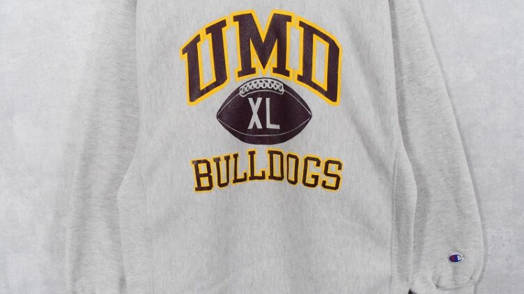 Feeet90’s Champion REVERSE WEAVE USA製 “UMD BULLDOGS” プリントスウェット XL