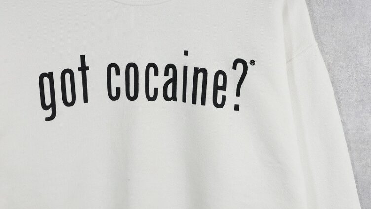 Feeet“got cocaine?” パロディプリントTシャツ