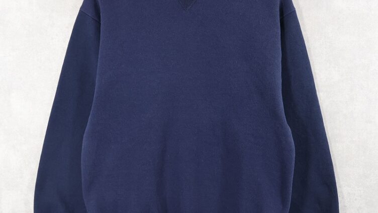 Feeet90’s RUSSELL ATHLETIC USA製 前V タートルネック 2トーン スウェット NAVY M
