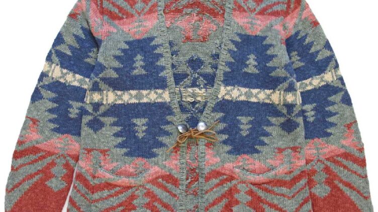 SixpacjoeLAUREN ラルフローレン ネイティブ柄 ショールカラー ラムウール ハンドニット ガウン S/M★カーディガン