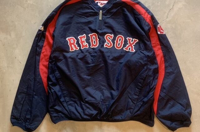 JACK CLOTHING SUPPLY【L/XL】majestic MLB ボストンレッドソックス プルオーバー ナイロンジャケット ネイビー■アメリカ古着 メジャーリーグ マジェスティック