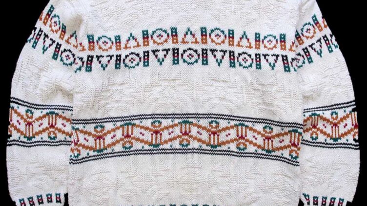 Sixpacjoe90s USA製 LANDS’ENDランズエンド フォークロア 編み柄 コットンニット セーター M