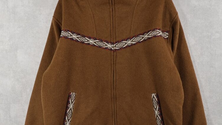 Sixpacjoe90s トルコ製 CHICO’S DESIGN フォークロア柄 コンチョボタン ウール混 ブランケット コート ML