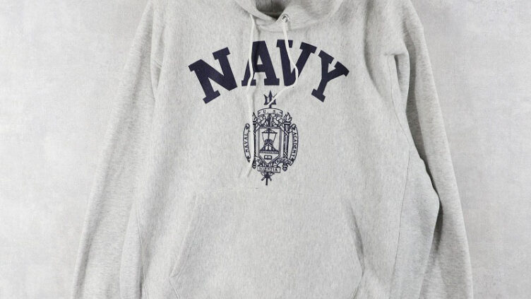 Feeet90’s USA製 REVERSE WEAVE TYPE “NAVY” プリントスウェットフーディー XS